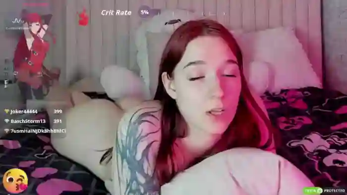 Her birthday is March 1st 2006 making her 19 years old, and the average age of models on Flirt4Free is 25—making her one of the younger models. Her height is 167cm, and her weight is 58kg. She identifies her ethnicity as caucasian. She has a shaved pubic hair, and a cup breasts on a slim body with blue eyes and average red hair.Her body art includes tattoo(s).