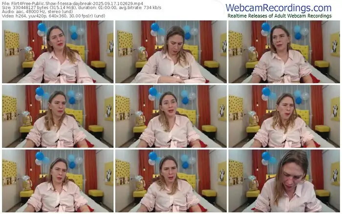 There are a total of 202 recordings (89 hours) of tessa-daybreak from Flirt4Free available below.