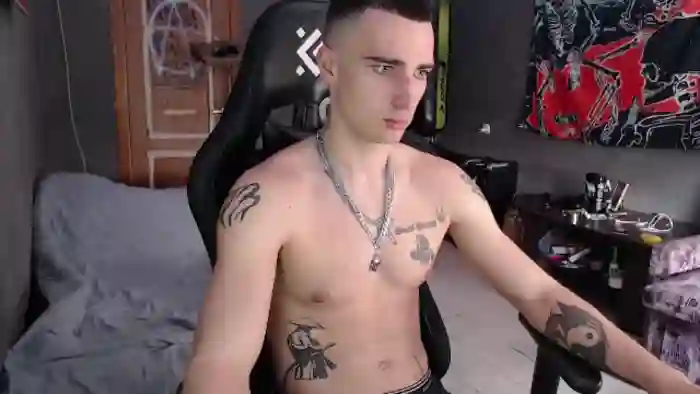 His birthday is January 1st 2002 making him 23 years old, and the average age of models on Flirt4Free is 25—making him one of the younger models. His height is 185cm, and his weight is 75kg. He identifies his ethnicity as caucasian. He has a natural pubic hair, athletic body with blue eyes and short brown hair.His body art includes tattoo(s).