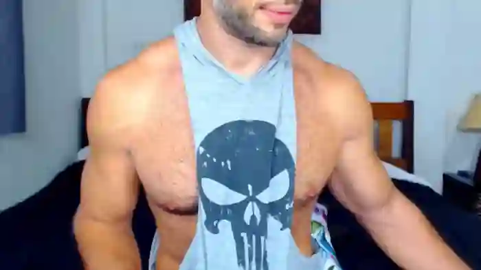 His birthday is August 30th 1985 making him 40 years old, and the average age of models on Flirt4Free is 25—making him one of the older models. His height is 185cm, and his weight is 100kg. He identifies his ethnicity as caucasian. He has a trimmed pubic hair, muscular body with green eyes and short black hair.His body art includes tattoo(s).