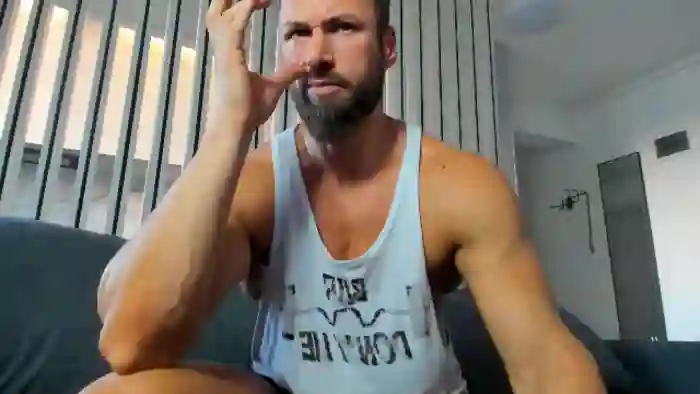 His birthday is July 17th 1987 making him 38 years old, and the average age of models on Flirt4Free is 25—making him one of the older models. His height is 180cm, and his weight is 93kg. He identifies his ethnicity as caucasian. He has a trimmed pubic hair, muscular body with blue eyes and short blonde hair.
