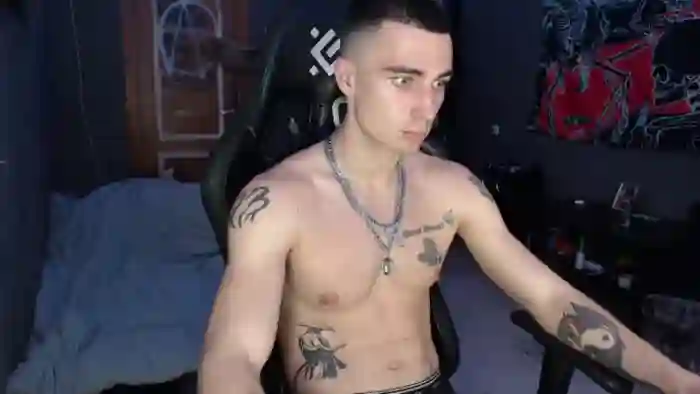 His birthday is January 1st 2002 making him 23 years old, and the average age of models on Flirt4Free is 25—making him one of the younger models. His height is 185cm, and his weight is 75kg. He identifies his ethnicity as caucasian. He has a natural pubic hair, athletic body with blue eyes and short brown hair.His body art includes tattoo(s).