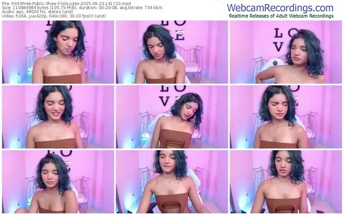 There are a total of 300 recordings (110 hours) of lola-jules from Flirt4Free available below.