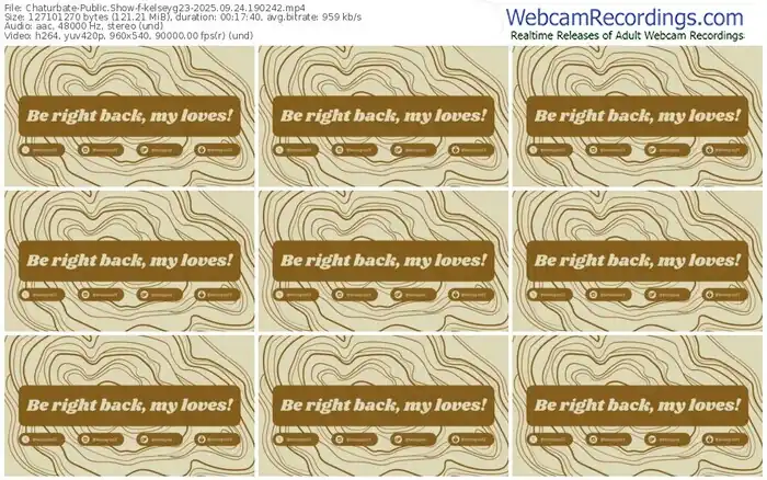 There are a total of 361 recordings (269 hours) of kelseyg23 from Chaturbate available below.