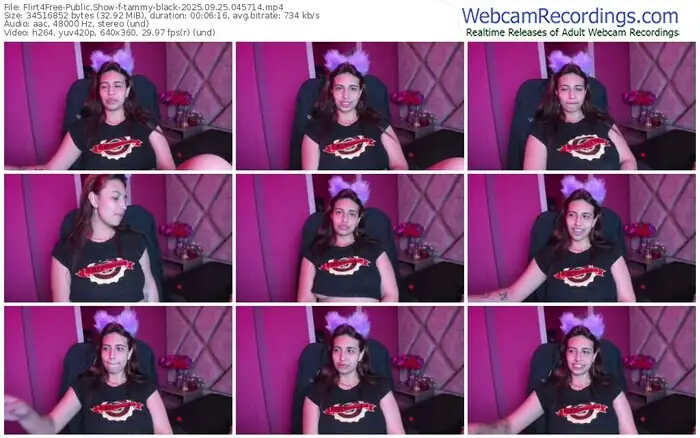 There are a total of 765 recordings (333 hours) of tammy-black from Flirt4Free available below.