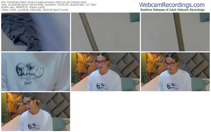 There are a total of 2,341 recordings (1,495 hours) of sophia-loreen from Flirt4Free available below.