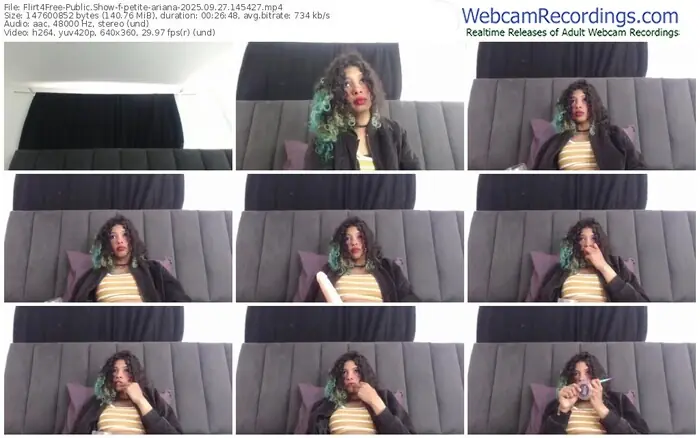 There are a total of 497 recordings (277 hours) of petite-ariana from Flirt4Free available below.