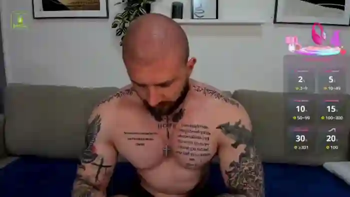 His birthday is March 2nd 1997 making him 28 years old, and the average age of models on Flirt4Free is 25—making him one of the older models. His height is 180cm, and his weight is 80kg. He identifies his ethnicity as caucasian. He has a trimmed pubic hair, muscular body with blue eyes and bald brown hair.His body art includes piercings, tattoo(s).
