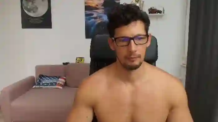 His birthday is August 8th 1991 making him 34 years old, and the average age of models on Flirt4Free is 25—making him one of the older models. His height is 183cm, and his weight is 93kg. He identifies his ethnicity as caucasian. He has a trimmed pubic hair, muscular body with green eyes and short black hair.