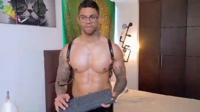 His birthday is October 9th 1987 making him 38 years old, and the average age of models on Flirt4Free is 25—making him one of the older models. His height is 180cm, and his weight is 92kg. He identifies his ethnicity as hispanic. He has a trimmed pubic hair, muscular body with brown eyes and short black hair.His body art includes piercings, tattoo(s).