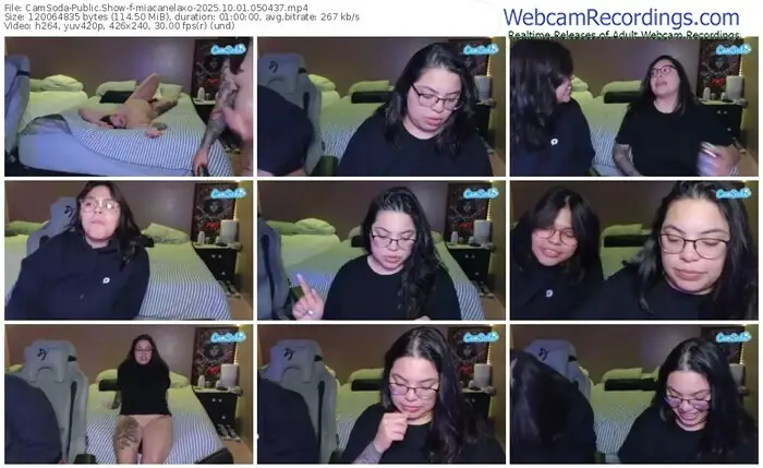 There are a total of 278 recordings (203 hours) of miacanelaxo from CamSoda and Bongacams available below.
