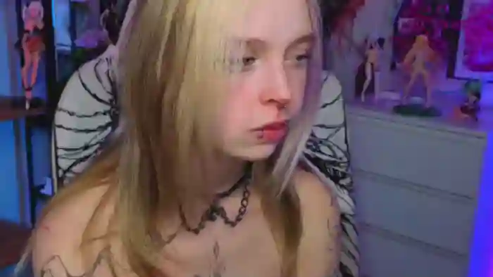Her birthday is September 16th 2005 making her 20 years old, and the average age of models on Flirt4Free is 25—making her one of the younger models. Her height is 154cm, and her weight is 42kg. She identifies her ethnicity as caucasian. She has a shaved pubic hair, and a cup breasts on a slim body with blue eyes and long blonde hair.Her body art includes piercings, tattoo(s).