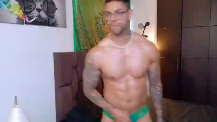 His birthday is October 9th 1987 making him 38 years old, and the average age of models on Flirt4Free is 25—making him one of the older models. His height is 180cm, and his weight is 92kg. He identifies his ethnicity as hispanic. He has a trimmed pubic hair, muscular body with brown eyes and short black hair.His body art includes piercings, tattoo(s).