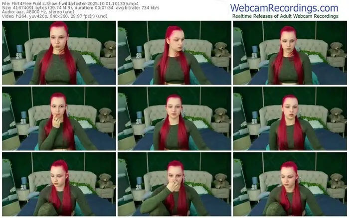 There are a total of 641 recordings (294 hours) of wilda-foster from Flirt4Free available below.