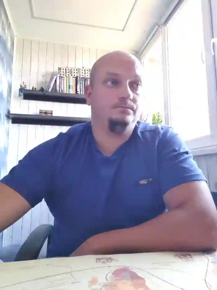 His birthday is May 7th 1990. He identifies his ethnicity as white. He has a chunky body with blue eyes.