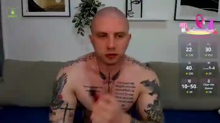 His birthday is March 2nd 1997 making him 28 years old, and the average age of models on Flirt4Free is 25—making him one of the older models. His height is 180cm, and his weight is 80kg. He identifies his ethnicity as caucasian. He has a trimmed pubic hair, muscular body with blue eyes and bald brown hair.His body art includes piercings, tattoo(s).