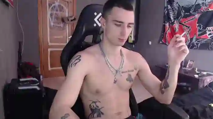 His birthday is January 1st 2002 making him 23 years old, and the average age of models on Flirt4Free is 25—making him one of the younger models. His height is 185cm, and his weight is 75kg. He identifies his ethnicity as caucasian. He has a natural pubic hair, athletic body with blue eyes and short brown hair.His body art includes tattoo(s).