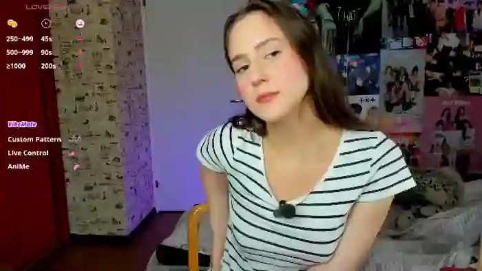 Her birthday is August 31st 2005 making her 20 years old, and the average age of models on Flirt4Free is 25—making her one of the younger models. Her height is 165cm, and her weight is 52kg. She identifies her ethnicity as caucasian. She has a shaved pubic hair, and b cup breasts on a average body with hazel eyes and shoulder brown hair.
