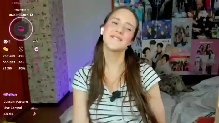 Her birthday is August 31st 2005 making her 20 years old, and the average age of models on Flirt4Free is 25—making her one of the younger models. Her height is 165cm, and her weight is 52kg. She identifies her ethnicity as caucasian. She has a shaved pubic hair, and b cup breasts on a average body with hazel eyes and shoulder brown hair.