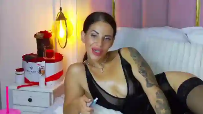 Her birthday is May 8th 1997 making her 28 years old, and the average age of models on Flirt4Free is 25—making her one of the older models. Her height is 165cm, and her weight is 60kg. She identifies her ethnicity as caucasian. She has a shaved pubic hair, and c cup breasts on a athletic body with green eyes and long black hair.Her body art includes piercings, tattoo(s).