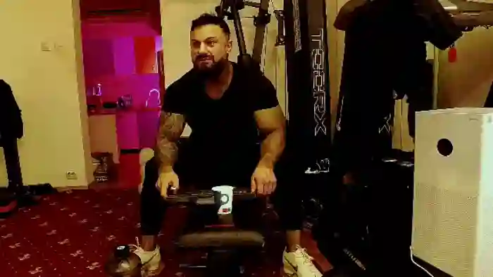 His birthday is May 15th 1991 making him 34 years old, and the average age of models on Flirt4Free is 25—making him one of the older models. His height is 172cm, and his weight is 93kg. He identifies his ethnicity as caucasian. He has a natural pubic hair, muscular body with brown eyes and short black hair.His body art includes tattoo(s).