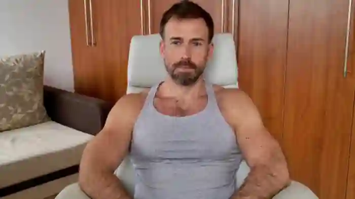 His birthday is June 30th 1992 making him 33 years old, and the average age of models on Flirt4Free is 25—making him one of the older models. His height is 187cm, and his weight is 89kg. He identifies his ethnicity as caucasian. He has a trimmed pubic hair, muscular body with blue eyes and short brown hair.