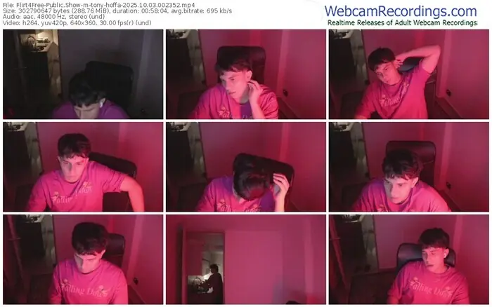 There are a total of 904 recordings (602 hours) of tony-hoffa from Flirt4Free available below.