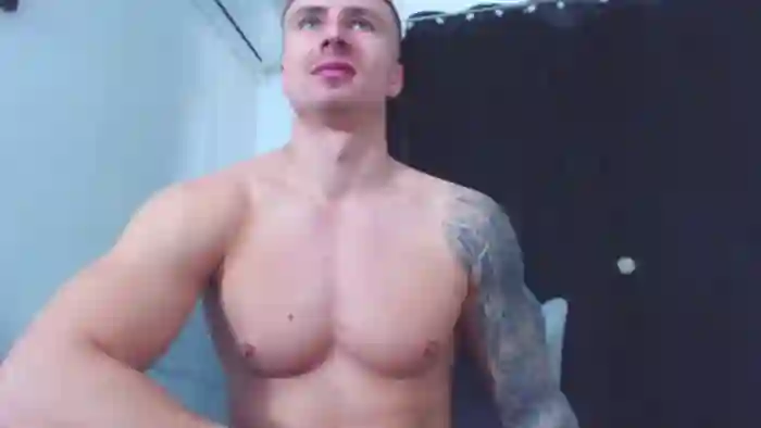 His birthday is July 18th 1997 making him 28 years old, and the average age of models on Flirt4Free is 25—making him one of the older models. His height is 183cm, and his weight is 83kg. He identifies his ethnicity as caucasian. He has a shaved pubic hair, muscular body with blue eyes and short blonde hair.His body art includes tattoo(s).