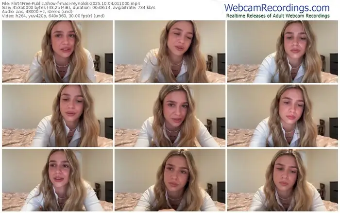 There are a total of 2,673 recordings (1,884 hours) of maci-reynolds from Flirt4Free available below.