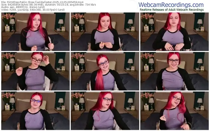 There are a total of 641 recordings (294 hours) of wilda-foster from Flirt4Free available below.