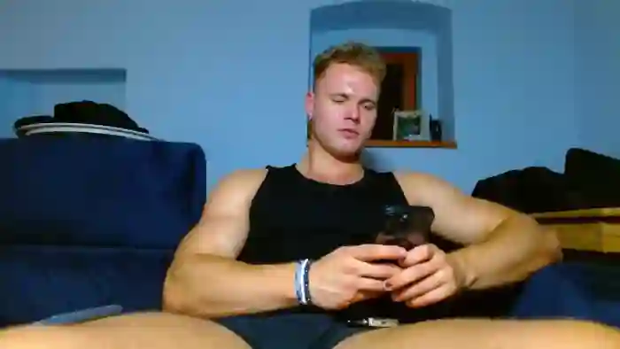 His birthday is April 29th 1998 making him 27 years old, and the average age of models on Flirt4Free is 25—making him one of the older models. His height is 188cm, and his weight is 106kg. He identifies his ethnicity as caucasian. He has a trimmed pubic hair, muscular body with blue eyes and short blonde hair.