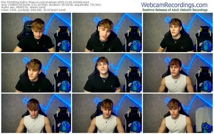 There are a total of 473 recordings (311 hours) of russ-madison from Flirt4Free available below.