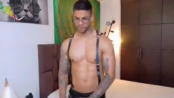 His birthday is October 9th 1987 making him 38 years old, and the average age of models on Flirt4Free is 25—making him one of the older models. His height is 180cm, and his weight is 92kg. He identifies his ethnicity as hispanic. He has a trimmed pubic hair, muscular body with brown eyes and short black hair.His body art includes piercings, tattoo(s).