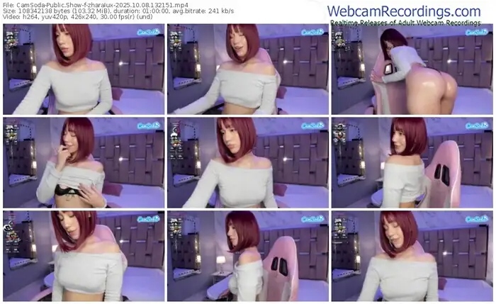 There are a total of 179 recordings (124 hours) of zharalux from CamSoda and Cam4 available below.