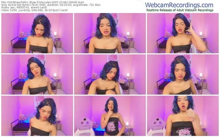 There are a total of 300 recordings (110 hours) of lola-jules from Flirt4Free available below.