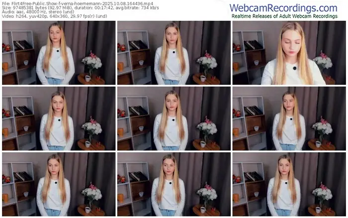 There are a total of 8 recordings (6 hours) of verna-hoernemann from Flirt4Free available below.