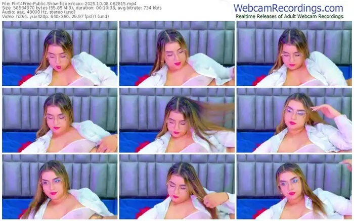 There are a total of 1,903 recordings (964 hours) of zoe-rouxx from Flirt4Free available below.
