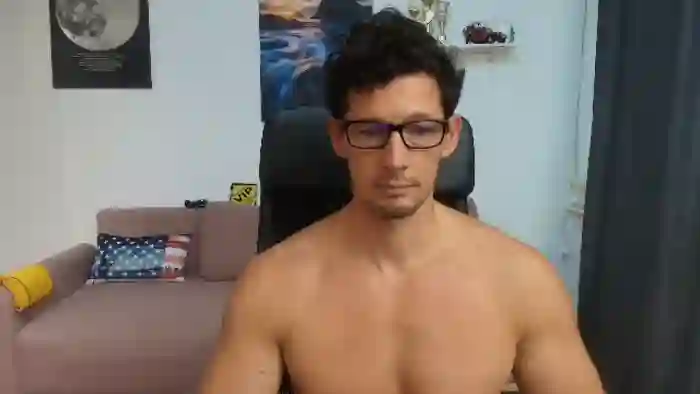 His birthday is August 8th 1991 making him 34 years old, and the average age of models on Flirt4Free is 25—making him one of the older models. His height is 183cm, and his weight is 93kg. He identifies his ethnicity as caucasian. He has a trimmed pubic hair, muscular body with green eyes and short black hair.