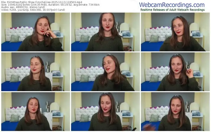 There are a total of 1,157 recordings (479 hours) of michel-lee from Flirt4Free available below.