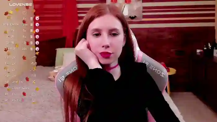 Her birthday is March 27th 2003 making her 22 years old, and the average age of models on Flirt4Free is 25—making her one of the younger models. Her height is 162cm, and her weight is 48kg. She identifies her ethnicity as caucasian. She has a shaved pubic hair, and c cup breasts on a slim body with blue eyes and long red hair.Her body art includes piercings, tattoo(s), fake breasts.