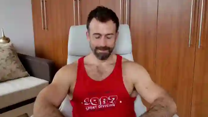 His birthday is June 30th 1992 making him 33 years old, and the average age of models on Flirt4Free is 25—making him one of the older models. His height is 187cm, and his weight is 89kg. He identifies his ethnicity as caucasian. He has a trimmed pubic hair, muscular body with blue eyes and short brown hair.