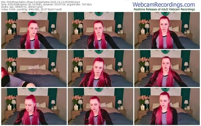 There are a total of 641 recordings (294 hours) of wilda-foster from Flirt4Free available below.