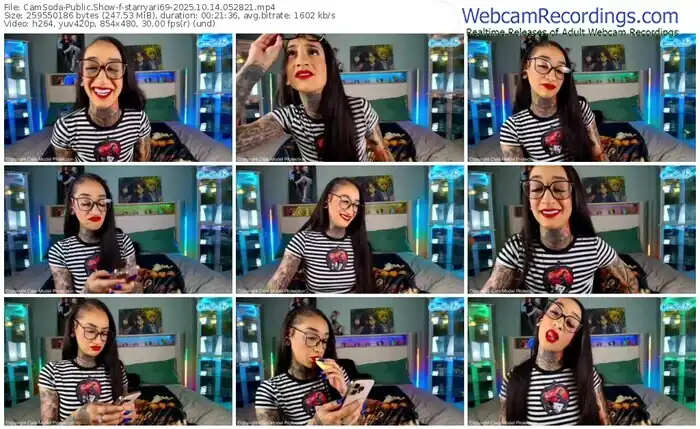 There are a total of 2,140 recordings (1,383 hours) of starryari69 from CamSoda available below.