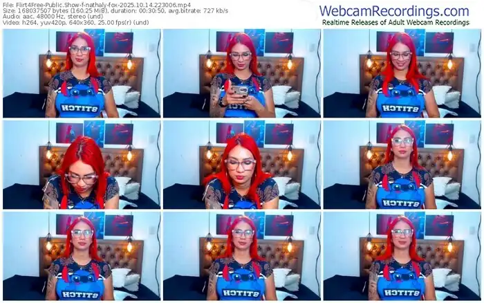 There are a total of 2,597 recordings (1,889 hours) of nathaly-fox from Flirt4Free available below.