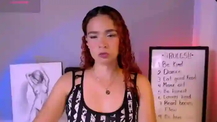 Her birthday is June 13th 1996 making her 29 years old, and the average age of models on Flirt4Free is 25—making her one of the older models. Her height is 165cm, and her weight is 62kg. She identifies her ethnicity as hispanic. She has a hairy pubic hair, and c cup breasts on a average body with brown eyes and long red hair.Her body art includes tattoo(s).