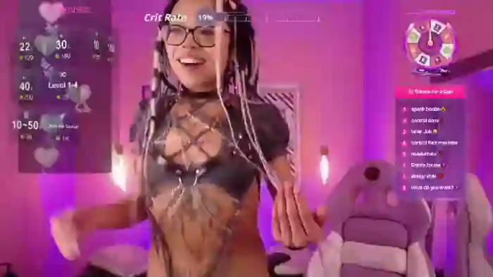 Her birthday is January 26th 2004 making her 21 years old, and the average age of models on Flirt4Free is 25—making her one of the younger models. Her height is 155cm, and her weight is 45kg. She identifies her ethnicity as asian. She has a natural pubic hair, and b cup breasts on a slim body with brown eyes and long black hair.Her body art includes piercings, tattoo(s).