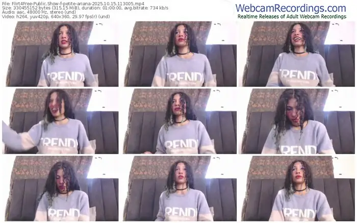 There are a total of 708 recordings (369 hours) of petite-ariana from Flirt4Free available below.