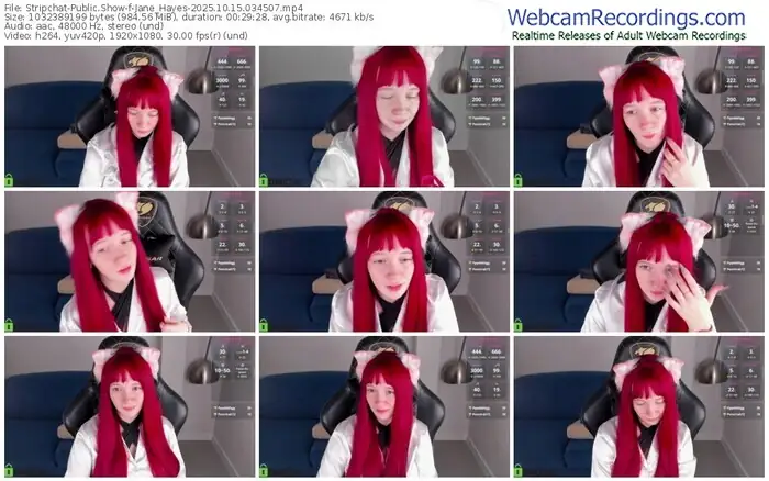 There are a total of 159 recordings (126 hours) of Jane_Hayes from Stripchat, Dreamcam and Chaturbate available below.