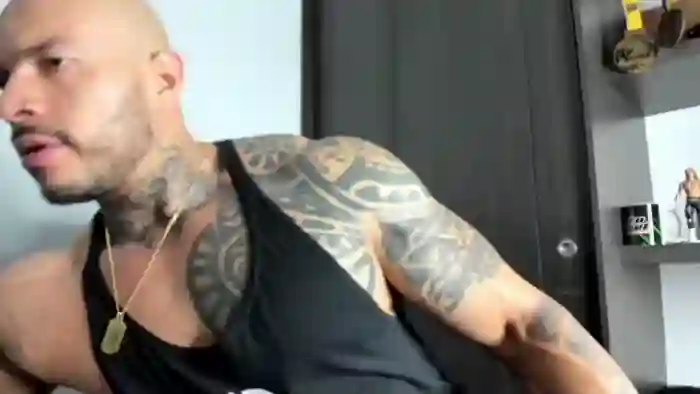 His birthday is July 12th 1994 making him 31 years old, and the average age of models on Flirt4Free is 25—making him one of the older models. His height is 185cm, and his weight is 113kg. He identifies his ethnicity as mixed. He has a shaved pubic hair, muscular body with brown eyes and bald bald hair.His body art includes tattoo(s).