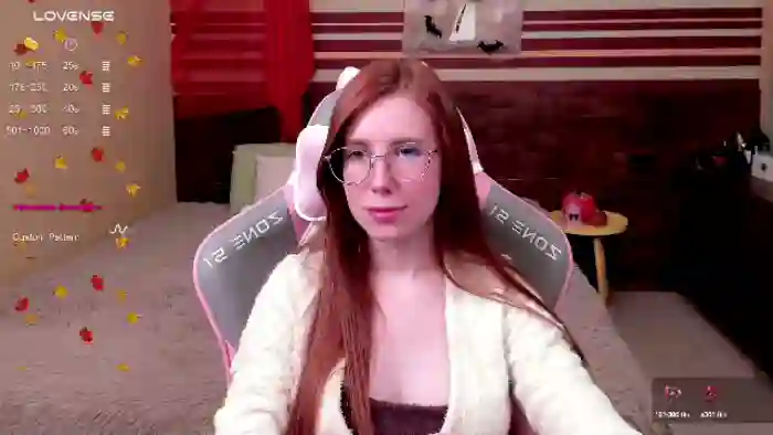 Her birthday is March 27th 2003 making her 22 years old, and the average age of models on Flirt4Free is 25—making her one of the younger models. Her height is 162cm, and her weight is 48kg. She identifies her ethnicity as caucasian. She has a shaved pubic hair, and c cup breasts on a slim body with blue eyes and long red hair.Her body art includes piercings, tattoo(s), fake breasts.
